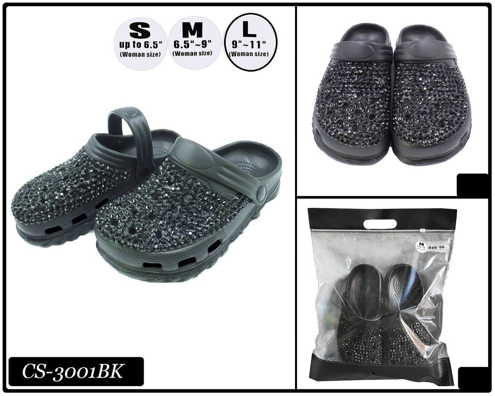 Fashion Rhinestone Clog Slippers #CS3001BK (PC) - X-Large (11" - 13")