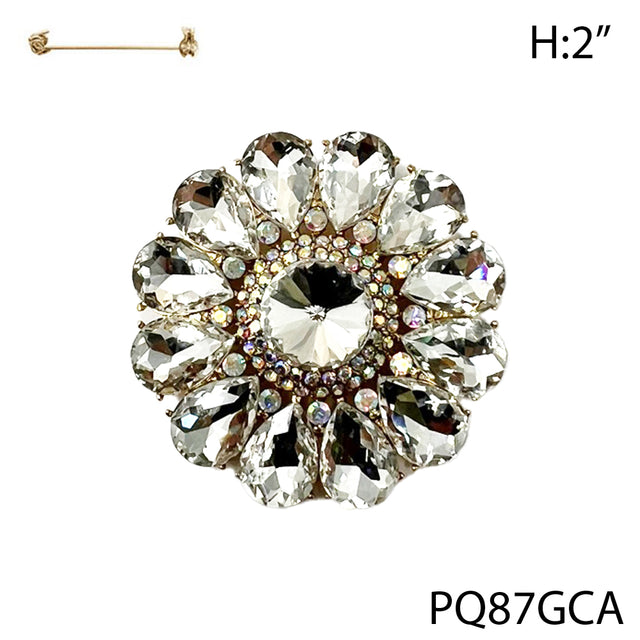 Fashion Circle Rhinestone Brooch #PQ87 - Multiple Colors (PC) - Gold / Clear #PQ87GCA is backordered and will ship as soon as it is back in stock.