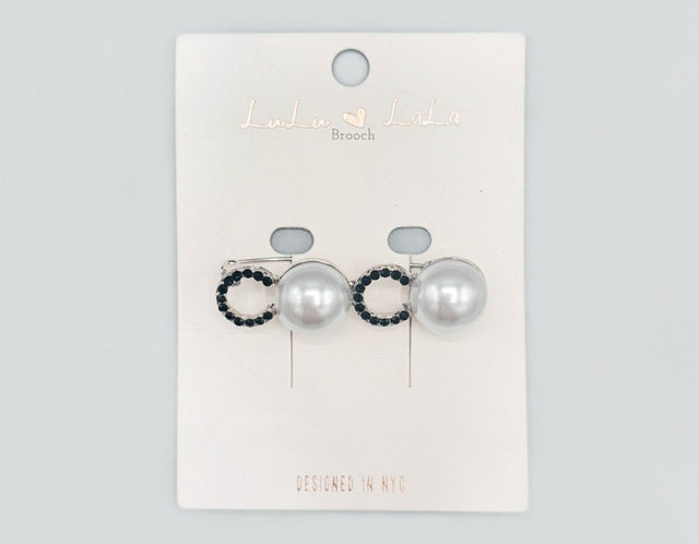 Fashion Design Pearl Brooch #MBR1092 - Multiple Colors (PC) - Silver / Black #MBR1092RHBK is backordered and will ship as soon as it is back in stock.