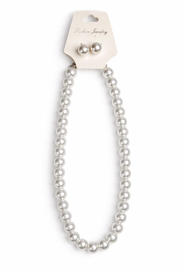 Fashion Medium Pearl Dozen Necklace Set #PRL2001WT White (12PC)