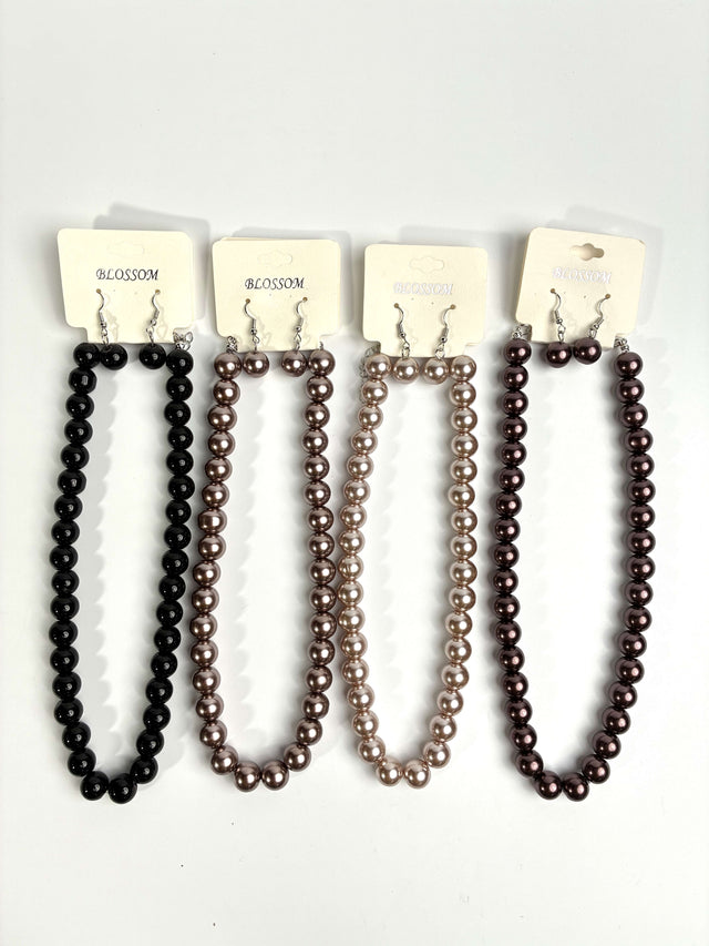 Fashion Pearl Necklace Set Brown Mix #INE237BR (12PC)