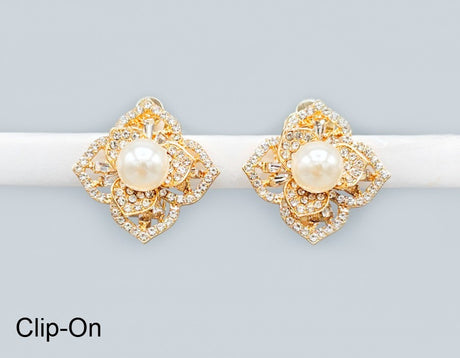 Fashion Pearl Flower Clip-On Earrings #GE2742 - Multiple Colors (PC)
