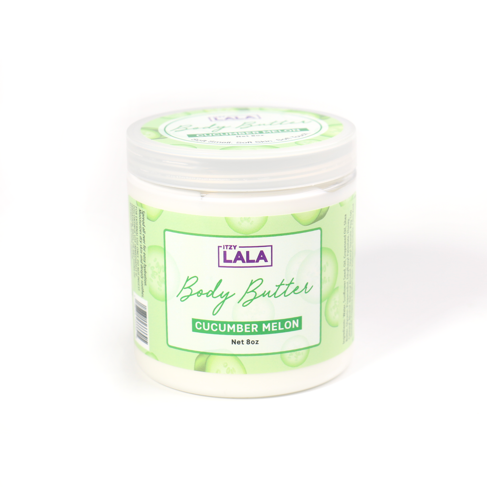 ITZY LALA Body butter is a rich and luxurious skincare product designed to deeply moisturize and nourish the skin. It’s formulated with a blend of shea butter, grapeseed oil, and sunflower seed oil that helps to hydrate even the driest skin. Unlike lighter lotions, body butters have a thick, creamy texture that creates a protective barrier on the skin’s surface, locking in moisture for long-lasting softness.