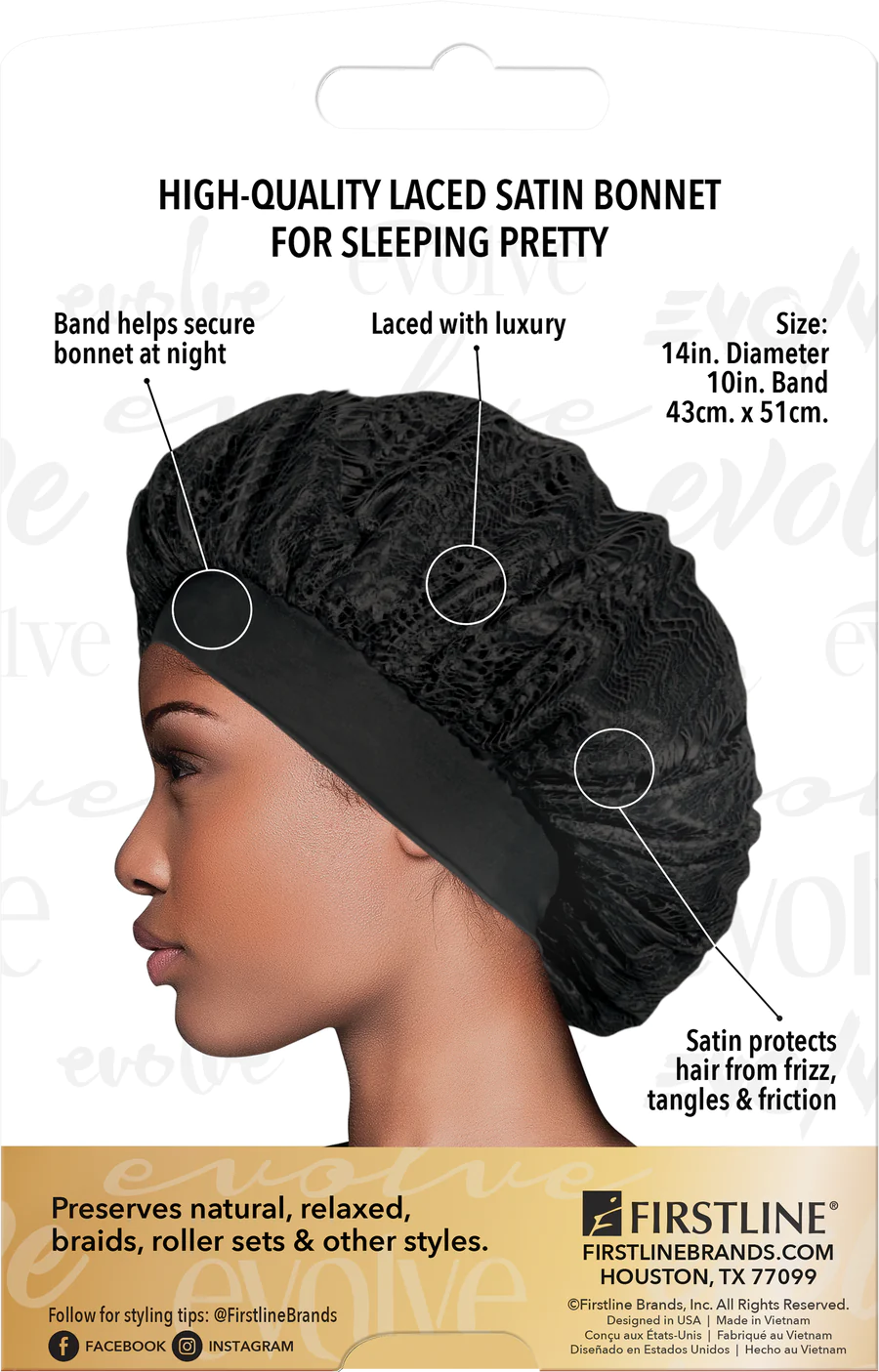 #3003 Evolve Laced Satin Wide-Edge Bonnet / Black (6PC)