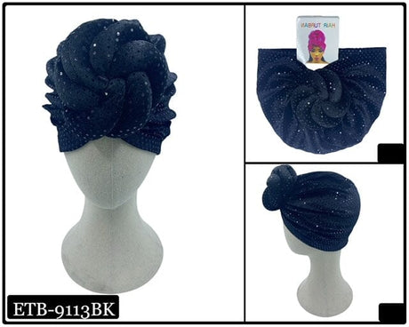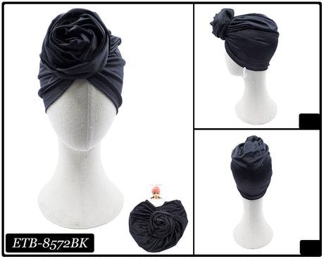 Big Flower Knotted Fashion Design Turban #ABN0117BK (12PC)