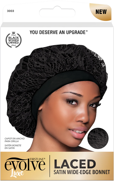#3003 Evolve Laced Satin Wide-Edge Bonnet / Black (6PC)