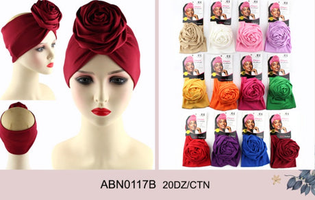 Big Flower Knotted Fashion Design Turban #ABN0117B (12PC)
