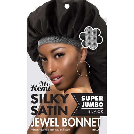 #3609 Ms. Remi Silky Satin Jewel Bonnet X-Jumbo Black (12PC)