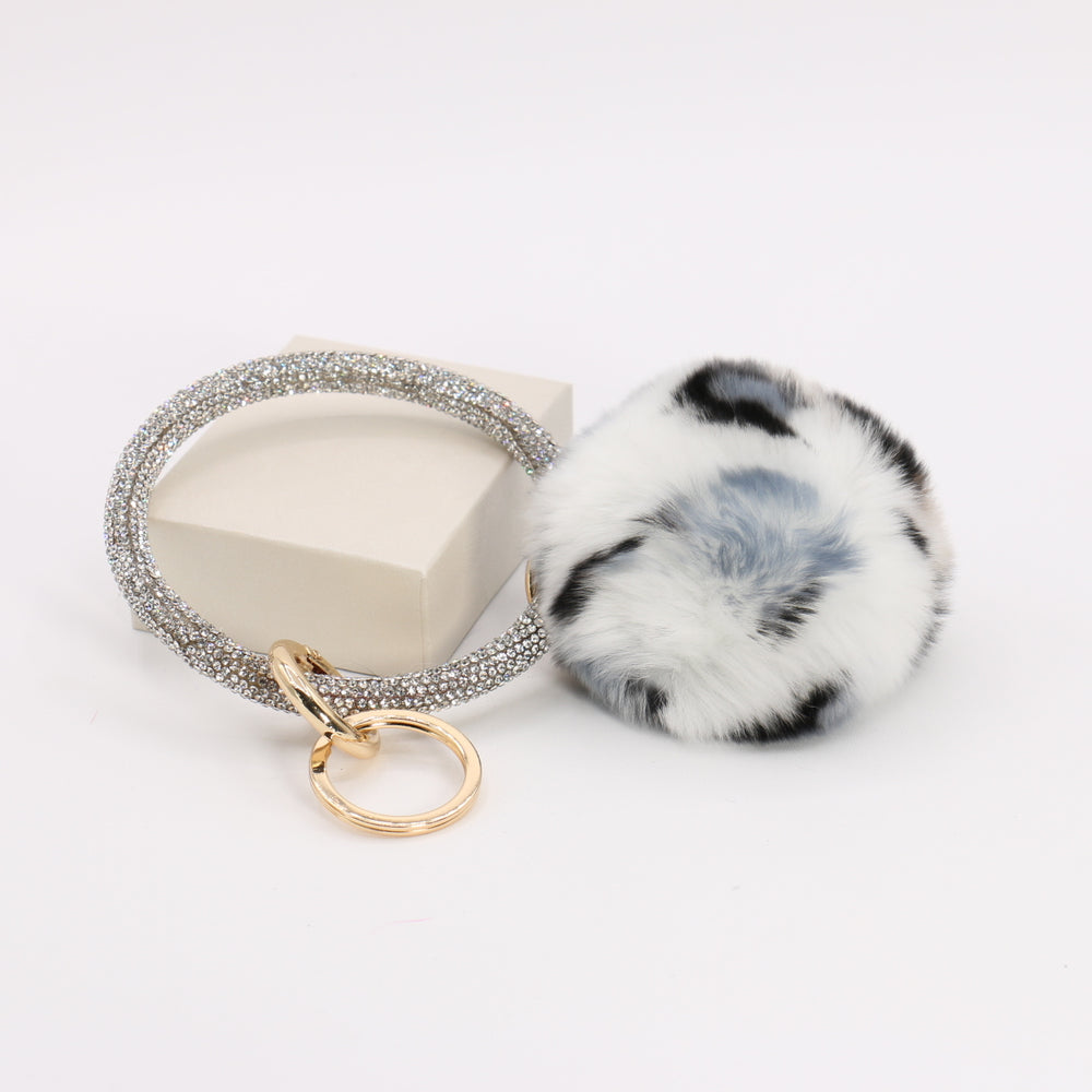 Pom Pom Keychain With Rhinestone Bracelet #MKH01 - Multiple Colors (PC) - Black #MKH01-BK is backordered and will ship as soon as it is back in stock.