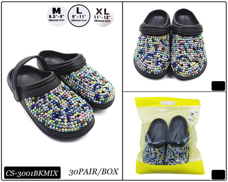 Fashion Rhinestone Clog Slippers #CS3001BKMIX (PC)