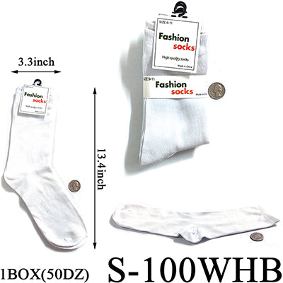 Plain White Long Socks (Size 9-11) #S-100WHB (12PC)