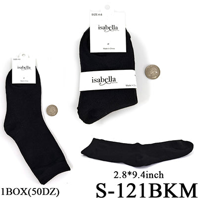 Plain Black Long Socks (Size 4-8) #S-121BKM (12PC)