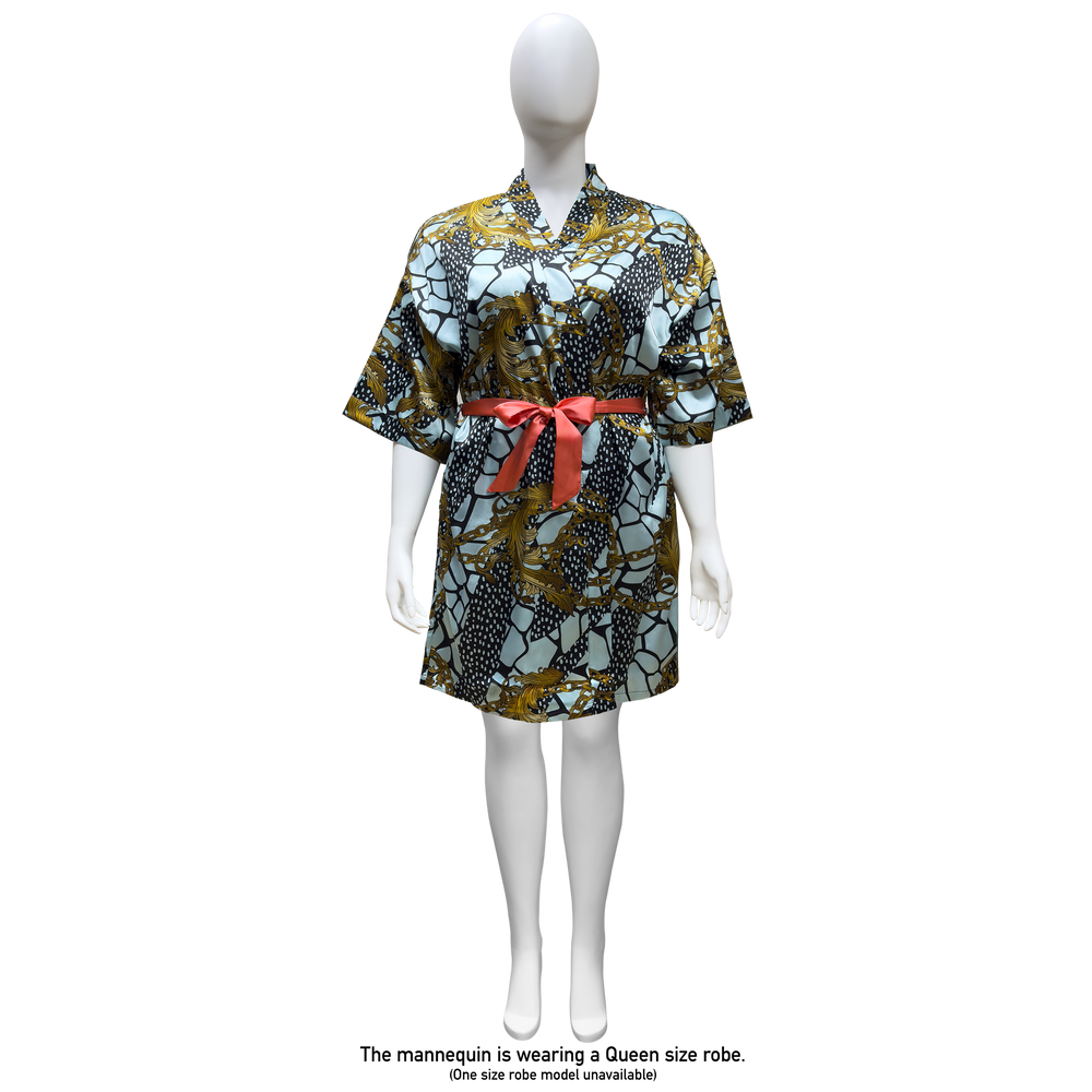 Lux Pattern Satin Short Robe #3801-3807 & 3841-3847 (PC) - #3802 PLEO - One Size is backordered and will ship as soon as it is back in stock.