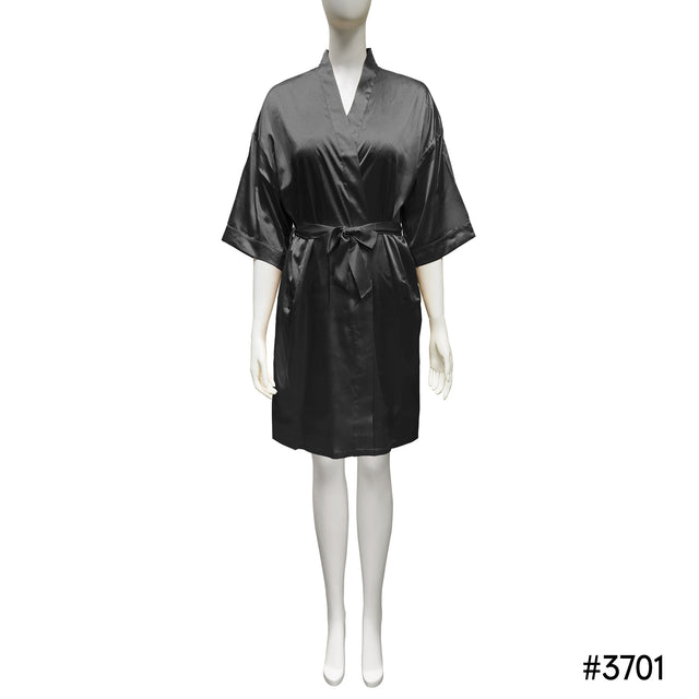 Lux Satin Short Robe #3701-3707 & #3741-3747(PC) - #3701 Onyx - One Size is backordered and will ship as soon as it is back in stock.