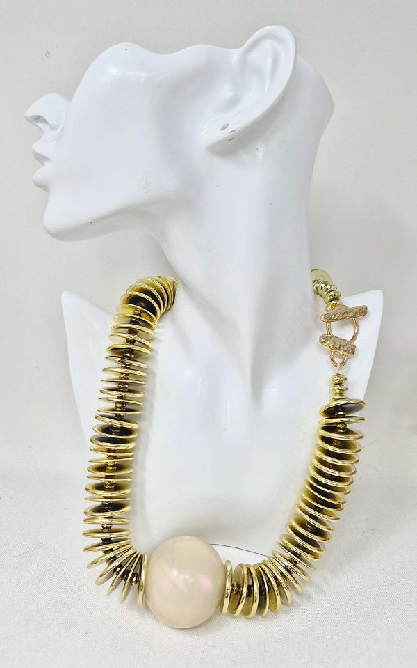 Fashion Gold Disc Necklace with Pearl Accent #JN11304G Gold (PC)