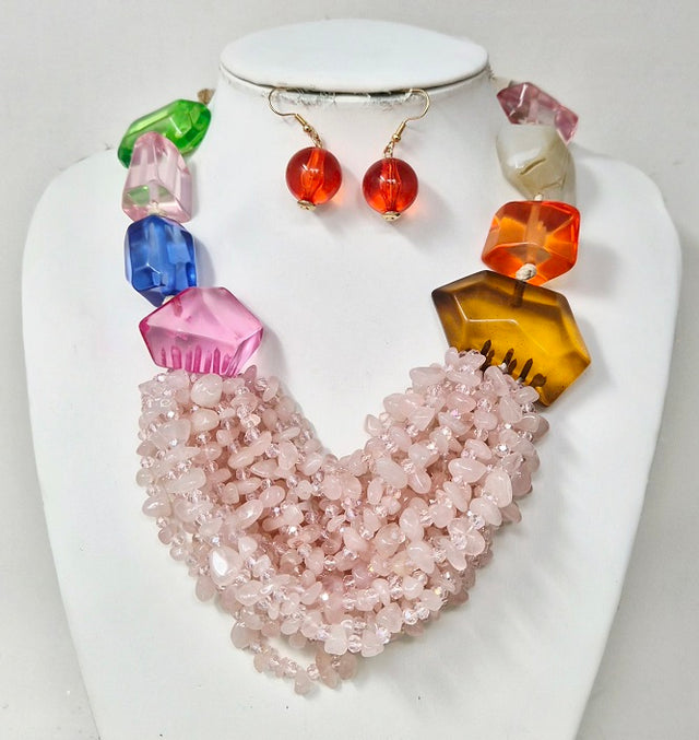 Fashion Bold Multicolor Stone Necklace Set #JN11297GMT (PC)