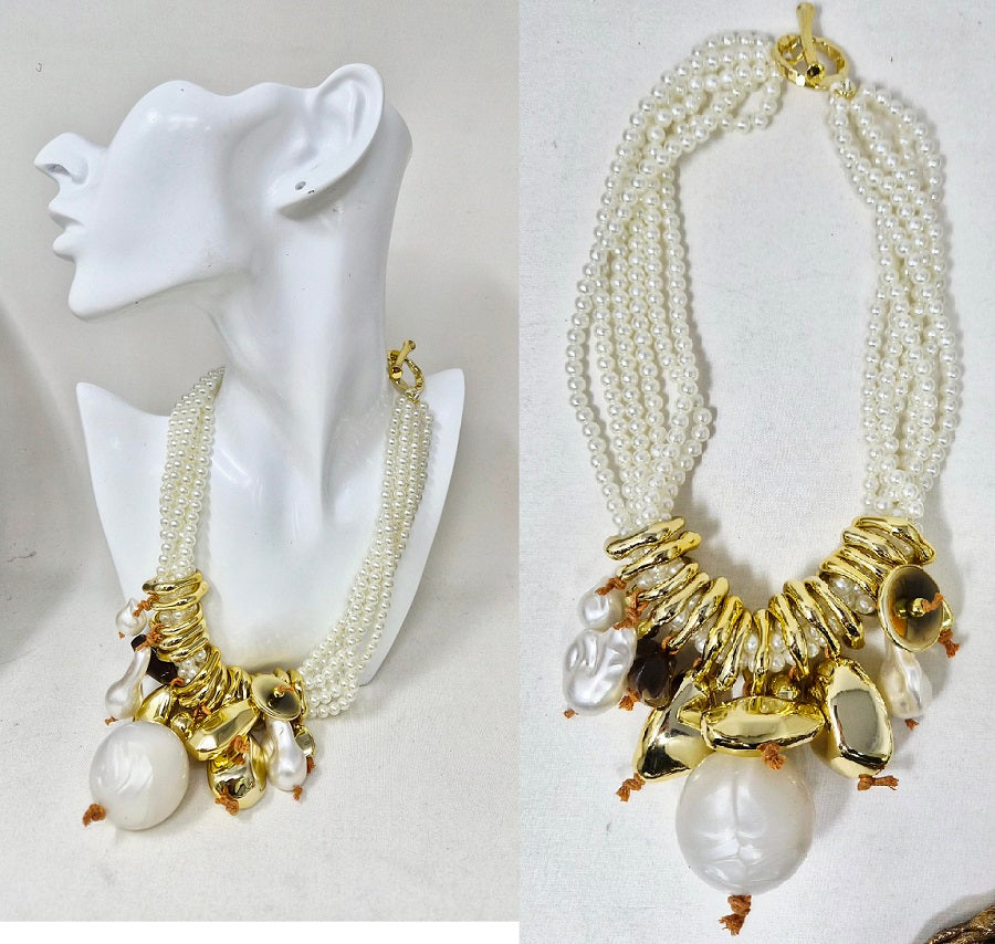 Fashion Pearl Charm Statement Necklace #JN11302GCR Gold (PC)