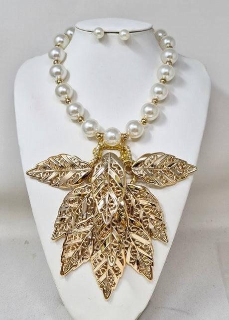 Fashion Pearl Leaf Necklace Set #JN11230GCR Gold (PC)