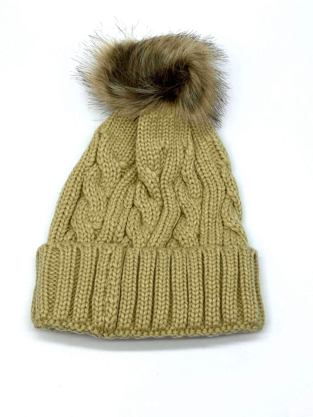 #AO321 Pom Pom Khaki Beanie w/ Brown Pom Pom