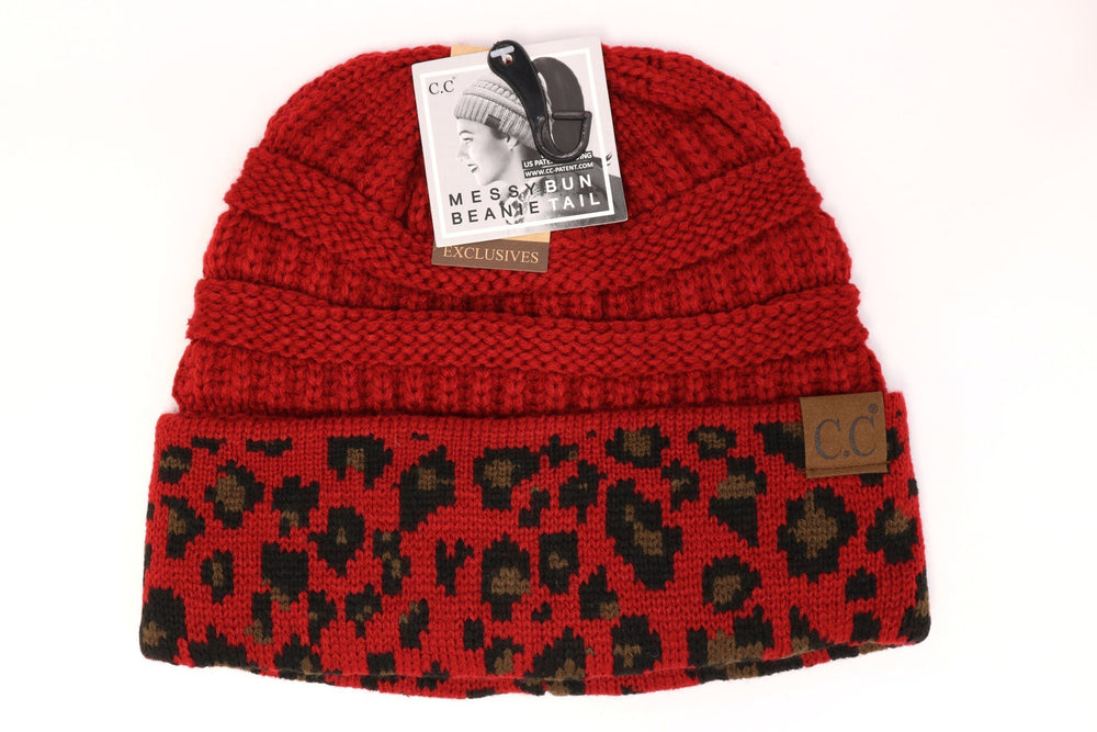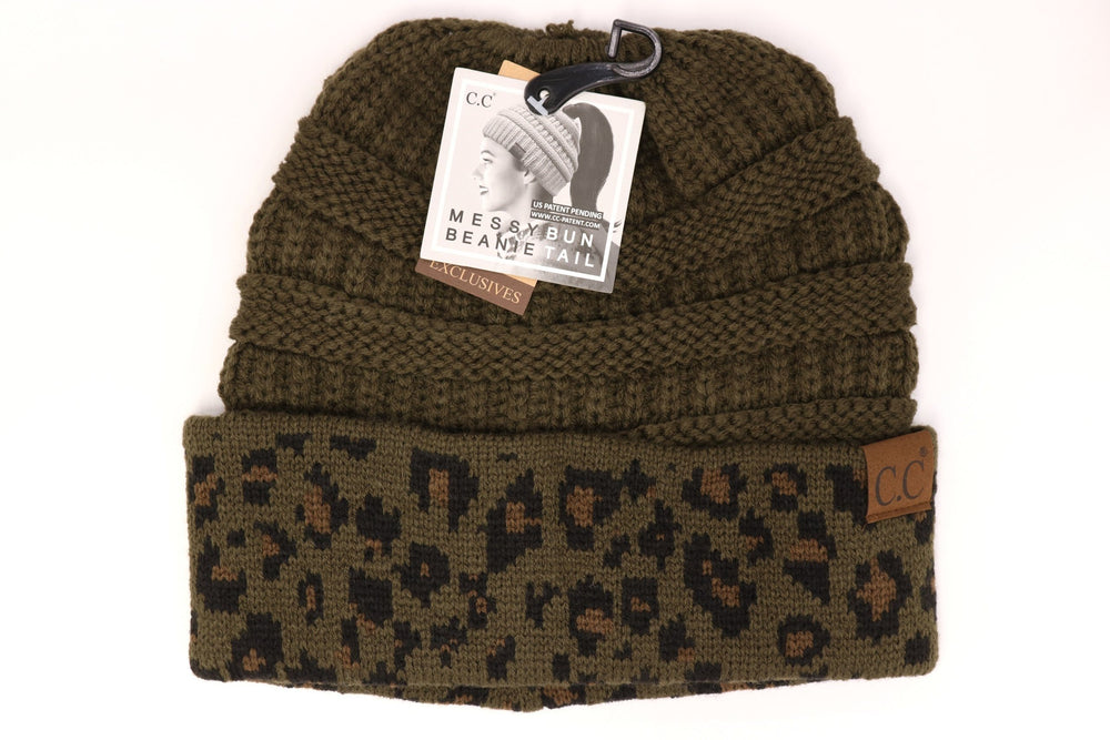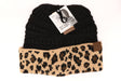 C.C. Matching Cuff Leopard Print Messy Buns Beanie #MB80 (PC)