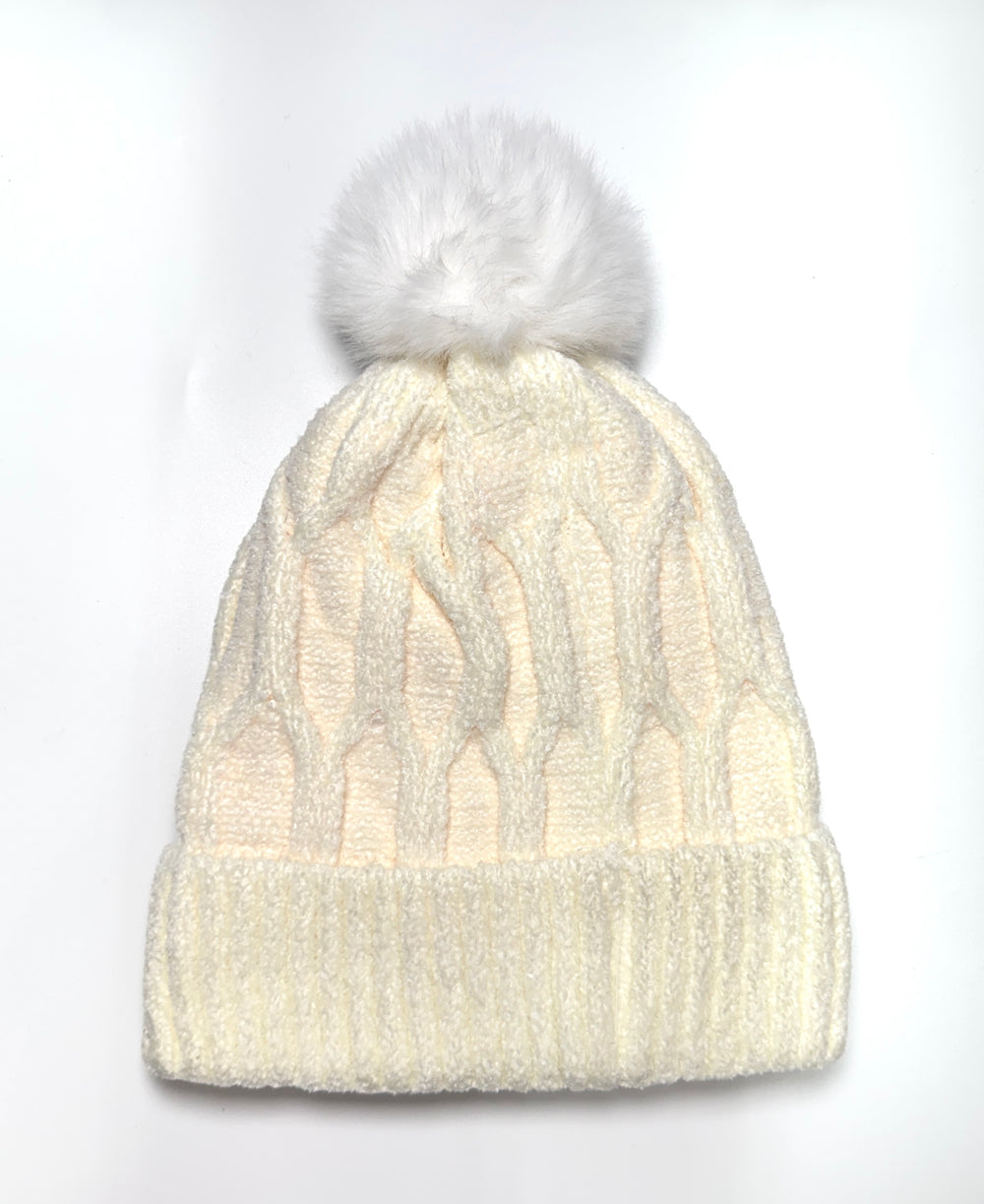 Fashion Knit Pom Pom Beanie #HT212 - Multiple Colors (PC) - Ivory #HT212 is backordered and will ship as soon as it is back in stock.