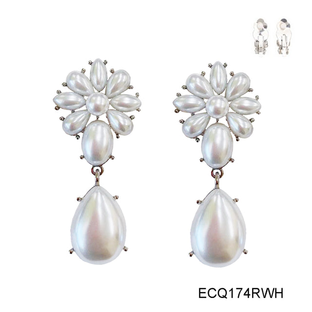 Fashion Pearl Drop Clip-On Earrings #ECQ174RWH White (PC)
