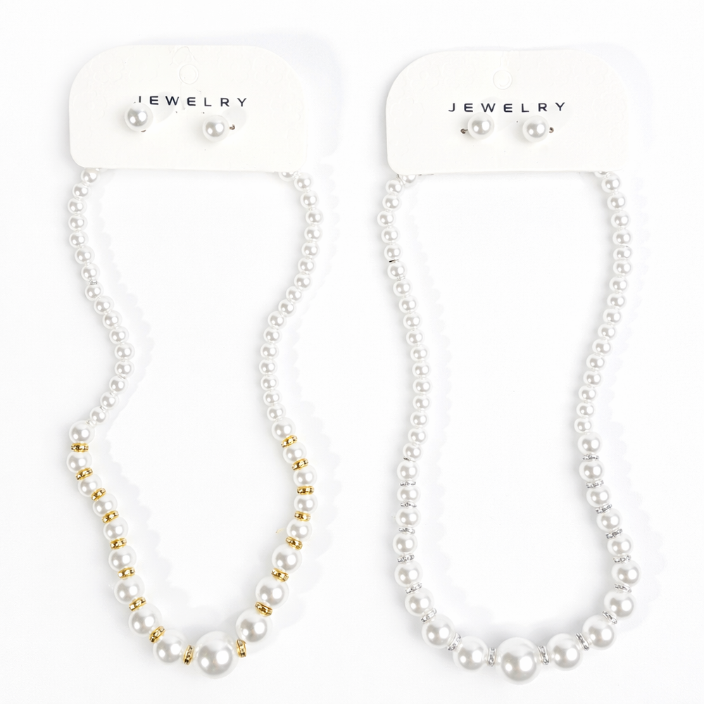 Fashion Pearl Necklace Set #RNK0844GS (12PC)