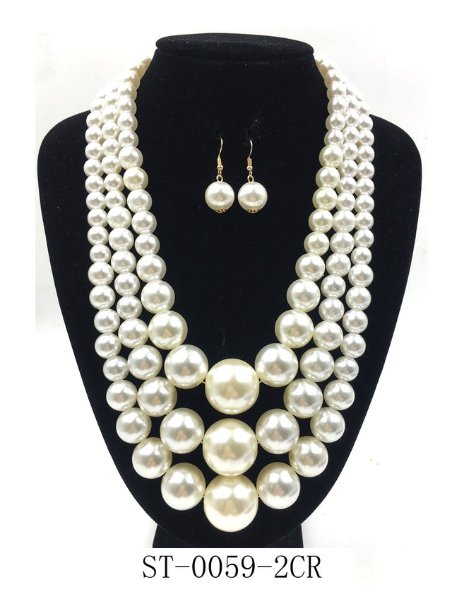 Fashion Pearl Necklace Set #ST-0059 - Multiple Colors (PC) - Cream #ST-0059-2CR is backordered and will ship as soon as it is back in stock.