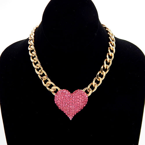 Fashion Rhinestone Heart Necklace #YN9091 - Multiple Colors (PC) - #YN9091GDRD - Gold/Red is backordered and will ship as soon as it is back in stock.