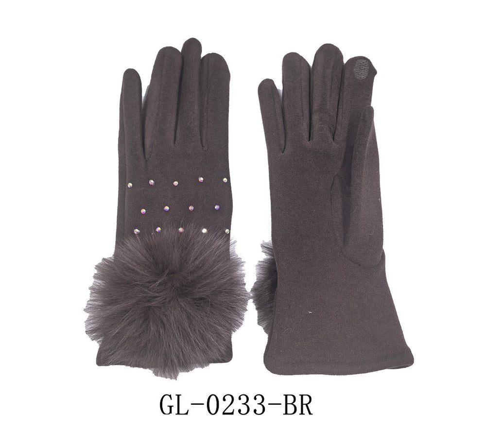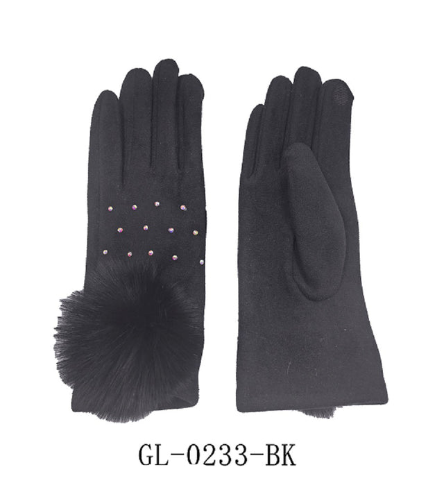 Fashion Winter Rhinestone Pom Pom Gloves #GL-0233 - Multiple Colors...