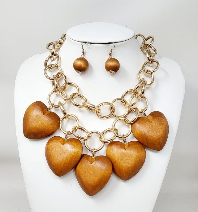 Fashion Heart Wooden Necklace Set #JN11189 - Multiple Colors (PC) - #JN11189GRD - RED is backordered and will ship as soon as it is back in stock.