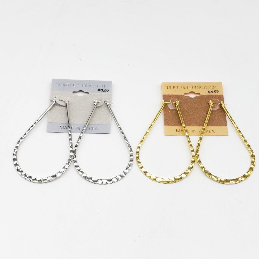 Gold/Silver Dented Oval Hoop Earrings #1968 (PC)