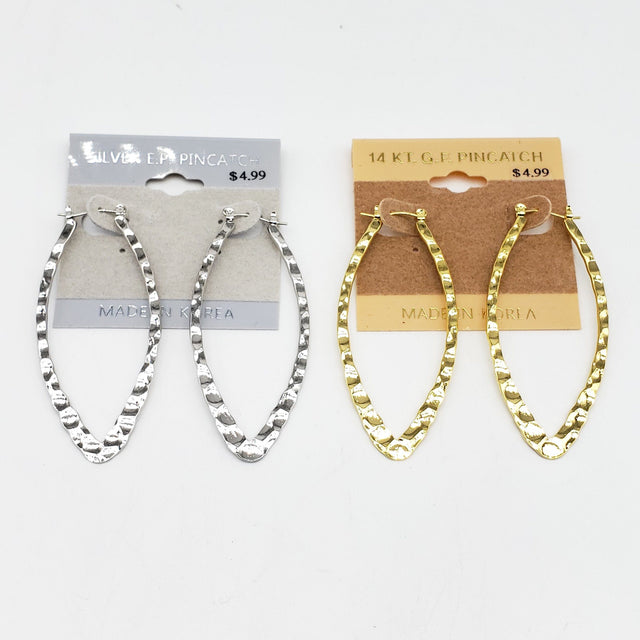 Gold/Silver Dented Oval Hoop Earrings #2060 (PC)