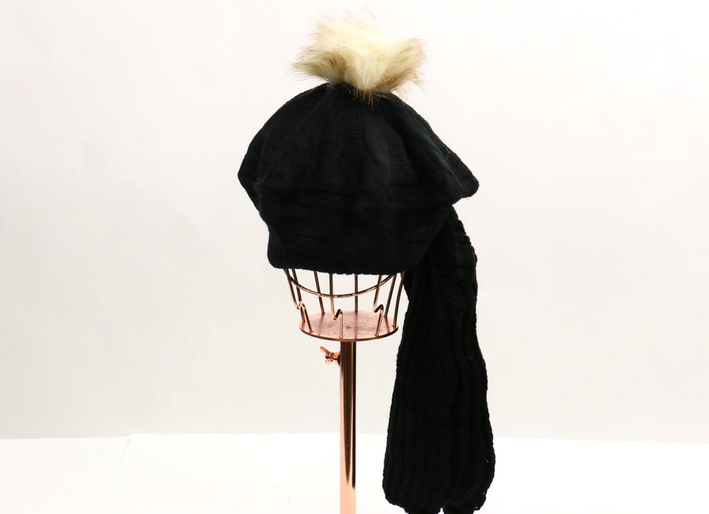 Pom Pom Tam / Scarf Set #HNST1016 (PC) - BLACK is backordered and will ship as soon as it is back in stock.