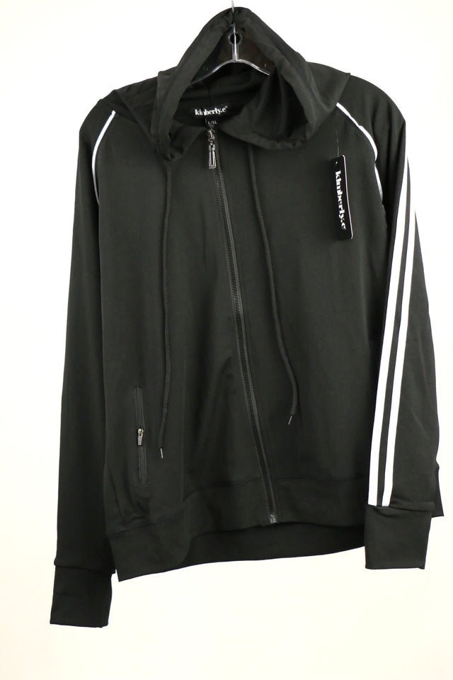 Hooded Jacket and Legging Set with White Stripes #YPS3143 (PC) - BLACK / SMALL/MEDIUM is backordered and will ship as soon as it is back in stock.