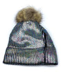 #KM2164HGBLK Shiny Black Beanie w/ Silver AB Stripe