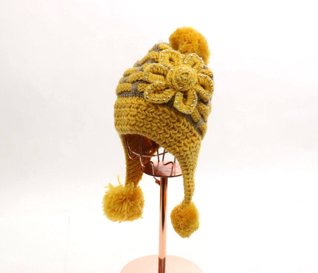 Rhinestone Flower Pom Pom Beanie #FLOBEA5 (PC) - YELLOW is backordered and will ship as soon as it is back in stock.