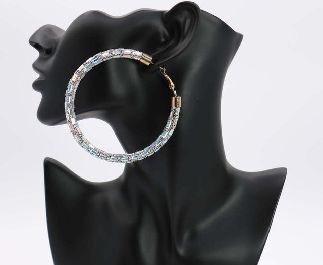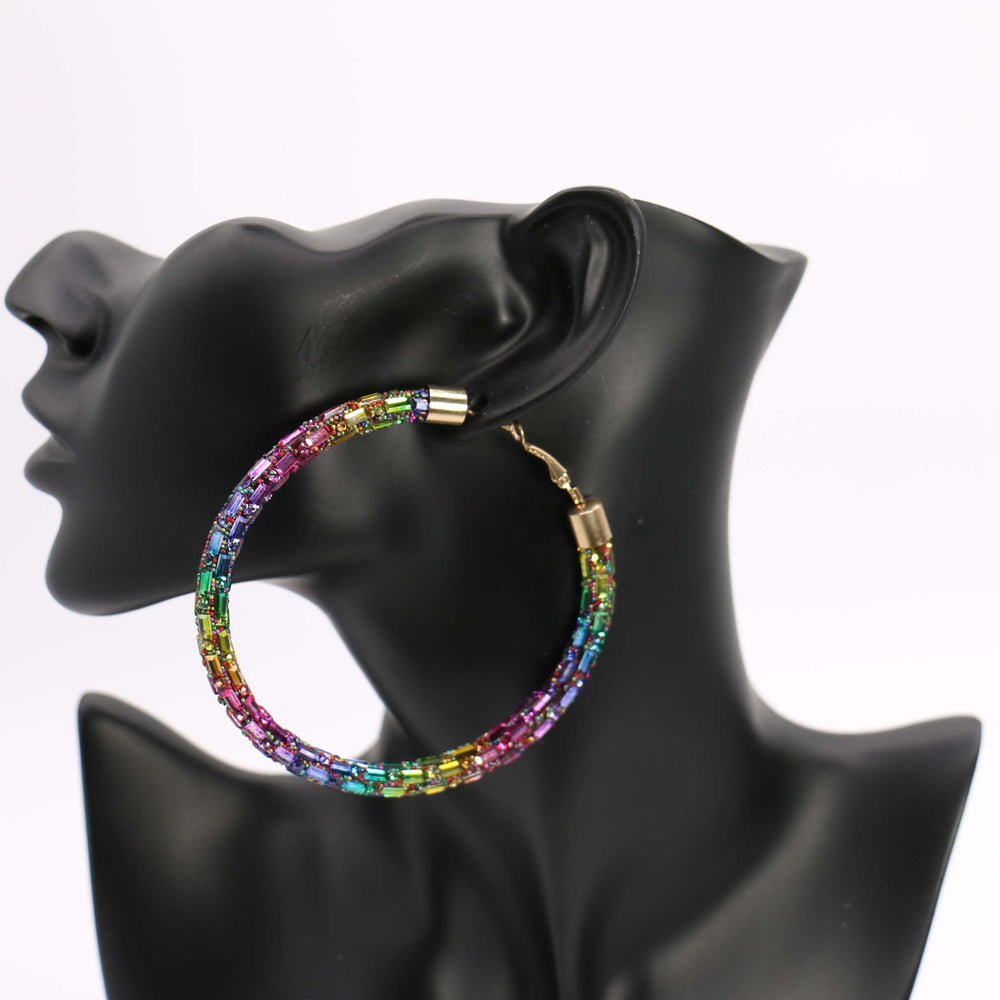Stone Hoop Earring 70mm #ME10 - Multiple Colors (PC)
