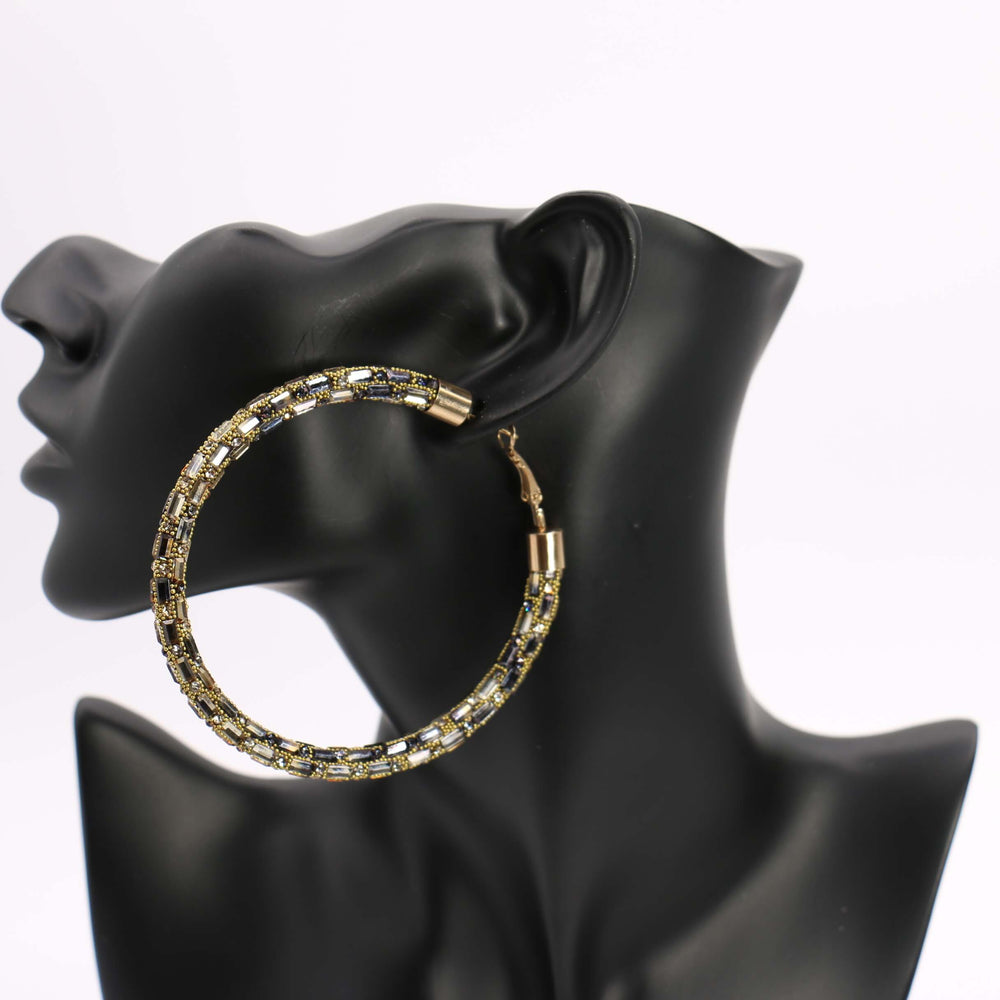 Stone Hoop Earring 70mm #ME10 - Multiple Colors (PC) - Topaz #ME10-23 is backordered and will ship as soon as it is back in stock.