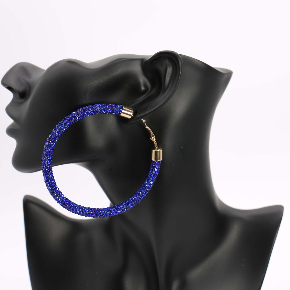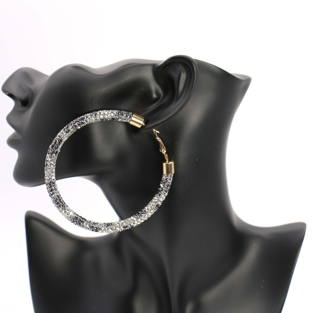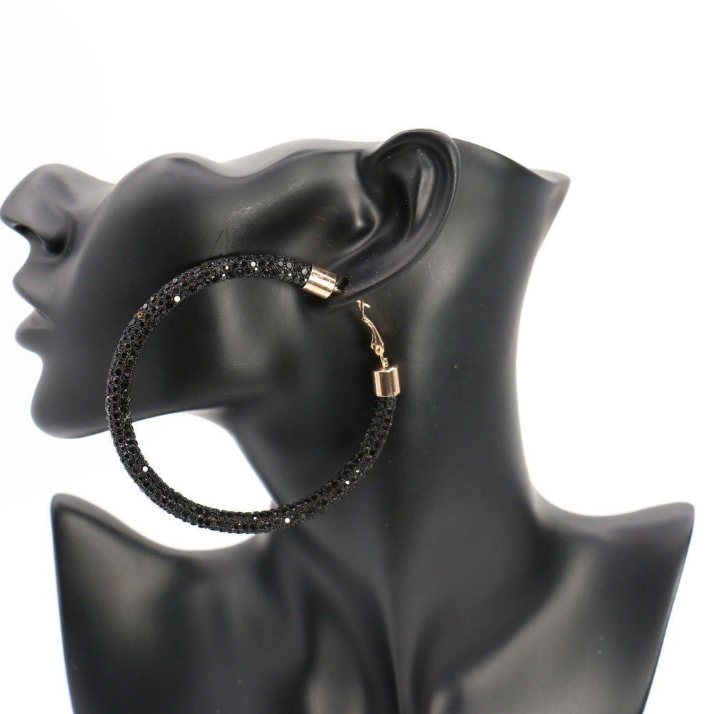 Stone Hoop Earring 70mm #ME11 - Multiple Colors (PC) - Black #ME11-10 is backordered and will ship as soon as it is back in stock.