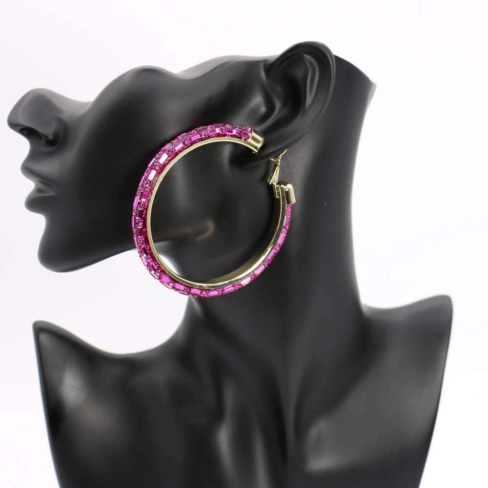 Stone Hoop Earring 55mm #ME12 - Multiple Colors (PC) - AB #ME12-11 is backordered and will ship as soon as it is back in stock.