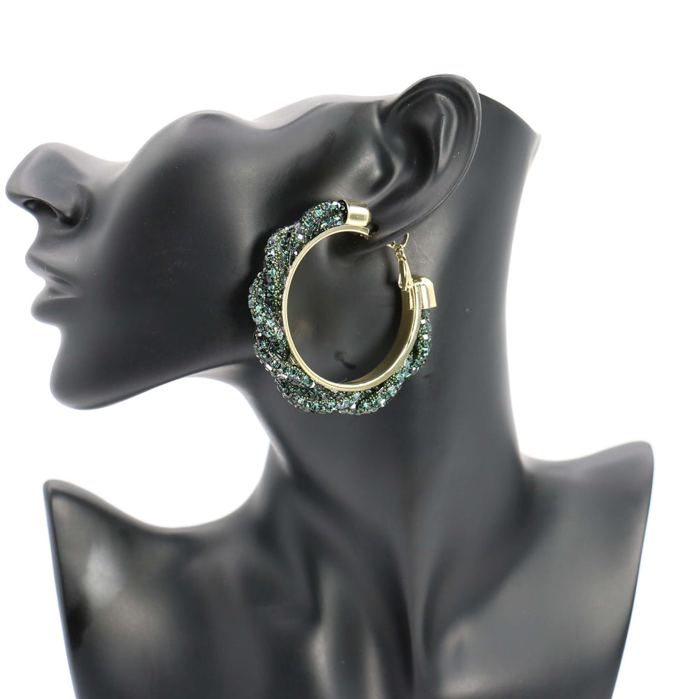 Stone Hoop Earring 40mm #ME08 - Multiple Colors (PC) - Esmerald #ME08-04 is backordered and will ship as soon as it is back in stock.