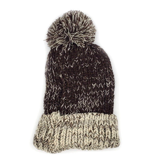 #KA247 Thick Knit Brown Pom Pom Beanie