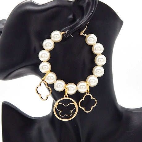 Fashion Pearl Hoop Earrings #YE8126GDCRM (PC)