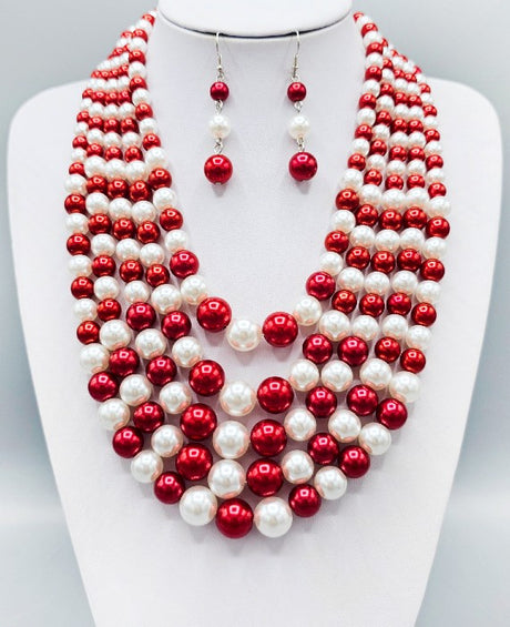 Fashion Pearl Necklace Set #GNE3260RD (PC)