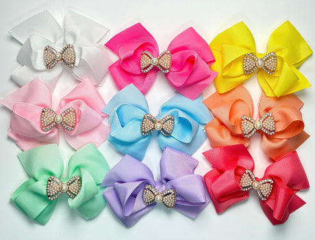 Fashion Pearl Bow Pastel Small Hairbows #QR2204P (24PC)