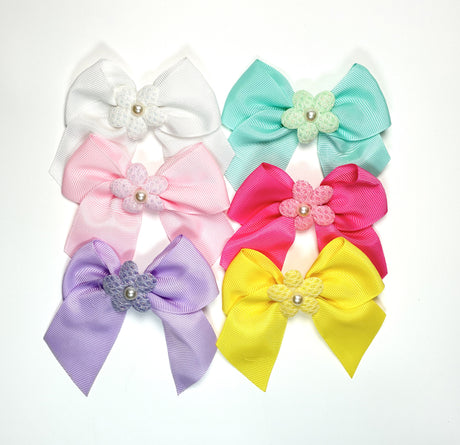 Fashion Tropical Flower Pearl Small Hairbows #QR2202A (24PC)