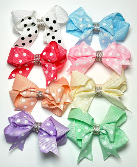 Fashion Polka Dot Assort Small Hairbows #ETP2487B (24PC)