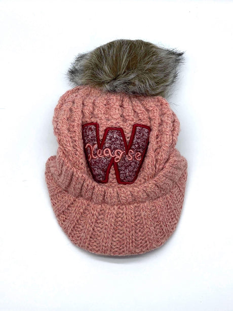 #AT187 W Design Pom Pom Visor Pink Beanie