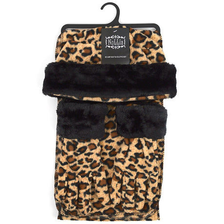 Adult Fleece Jaguar Print with Fur Trim Winter Set #WSET92